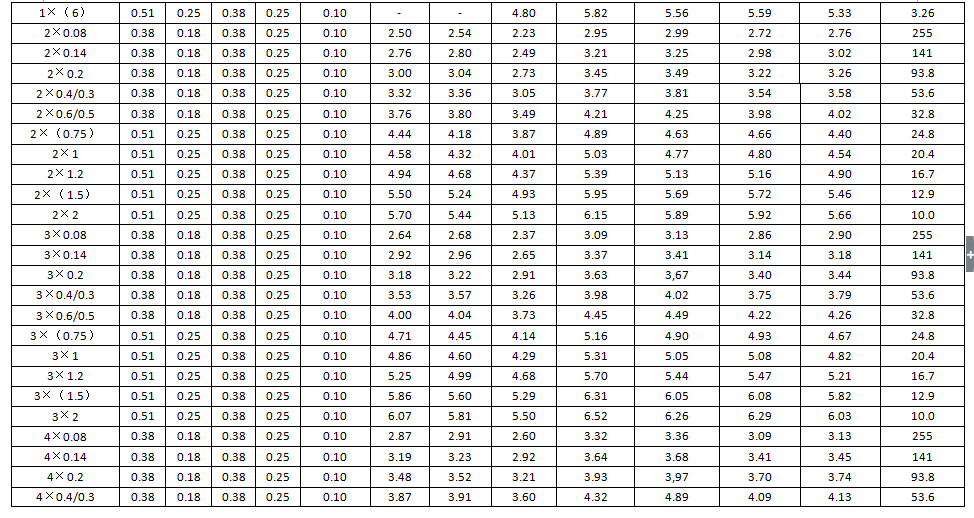 導體結構 根數(shù)/單線標稱直徑mm Conductor structure Number/singe wire nominal diameter |